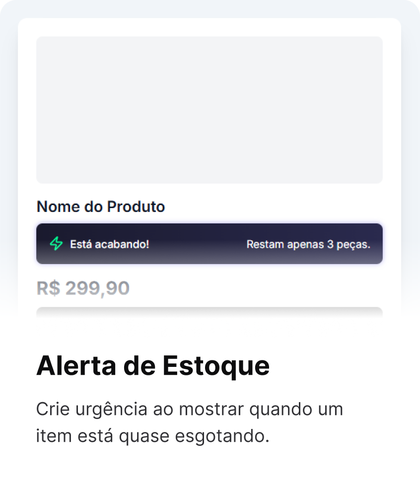 - Alerta de Estoque: Cria senso de urgência para acelerar compras.