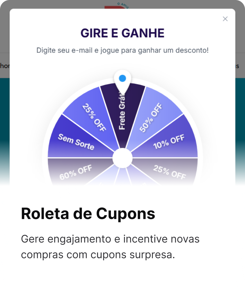 - Roleta de Cupons: Estimula compras oferecendo descontos aleatórios.